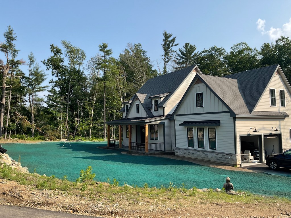 We provide full-service land excavation, grading, and lawn installation to restore properties from the ground up. For this project, we removed buried debris, unstable soil, and leftover materials from a previous contractor, then rebuilt the site with proper grading and a healthy soil base. The lawn was seeded with a native Maine grass blend chosen for its resilience, low environmental impact, and ability to support a healthier landscape over time.