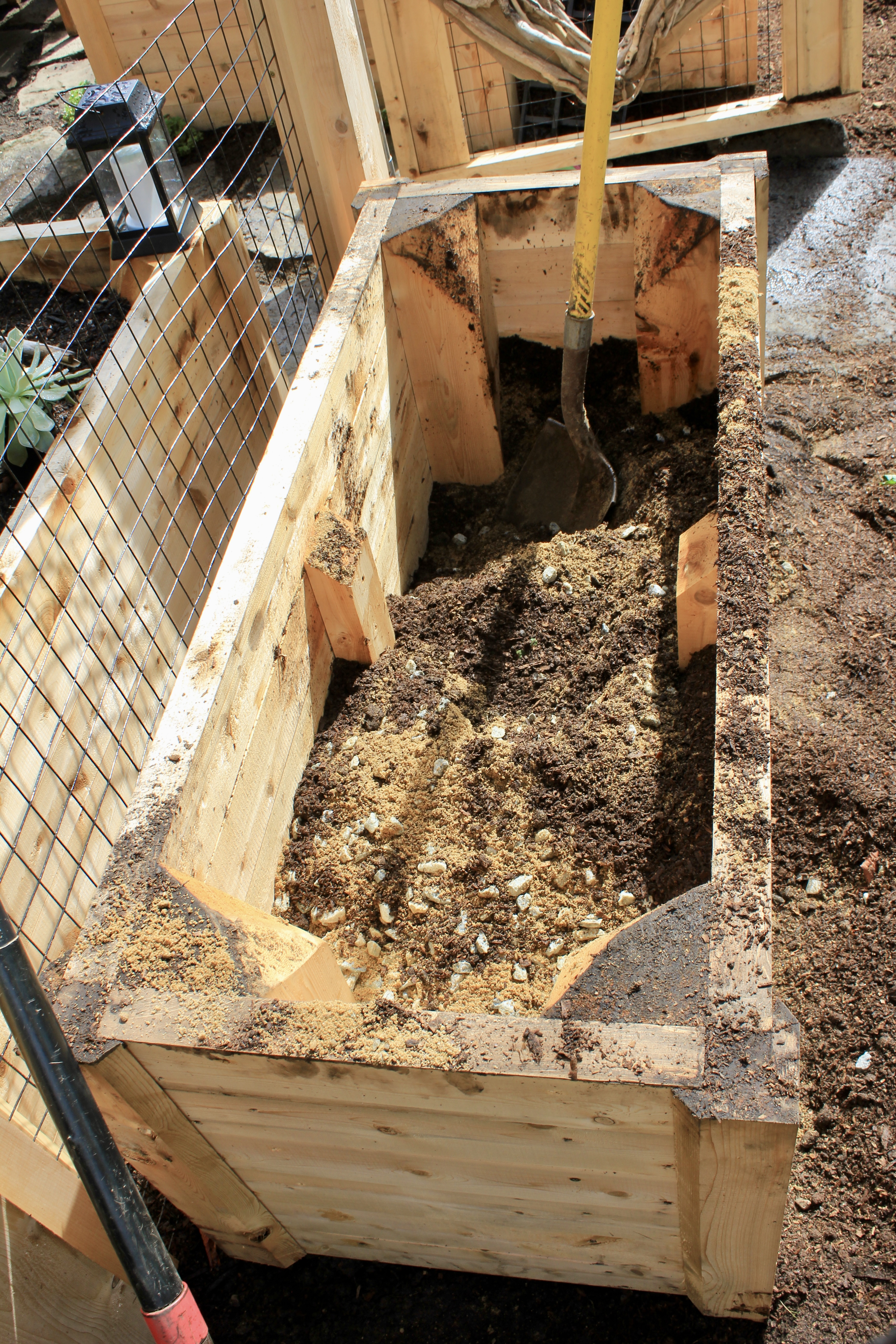Once installed, the raised beds were filled with a carefully balanced blend of compost, loam, and sand to promote healthy drainage and long-term soil fertility. Select boxes were customized with a different soil mix to accommodate cactus plantings, ensuring proper conditions for each type of growth.